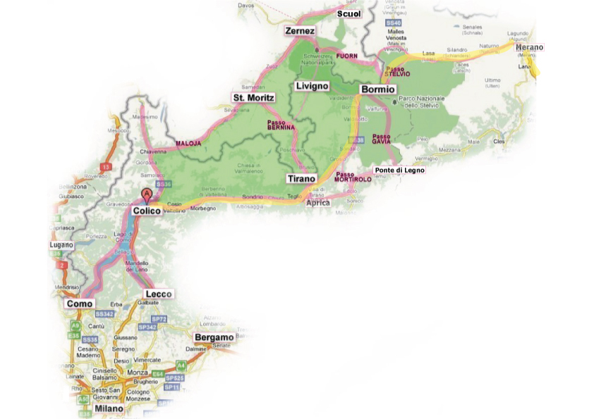 Colico - Morbegno - Sondrio - Tirano - Bormio - Passo Stelvio - Trafoi - Merano - Bolzano